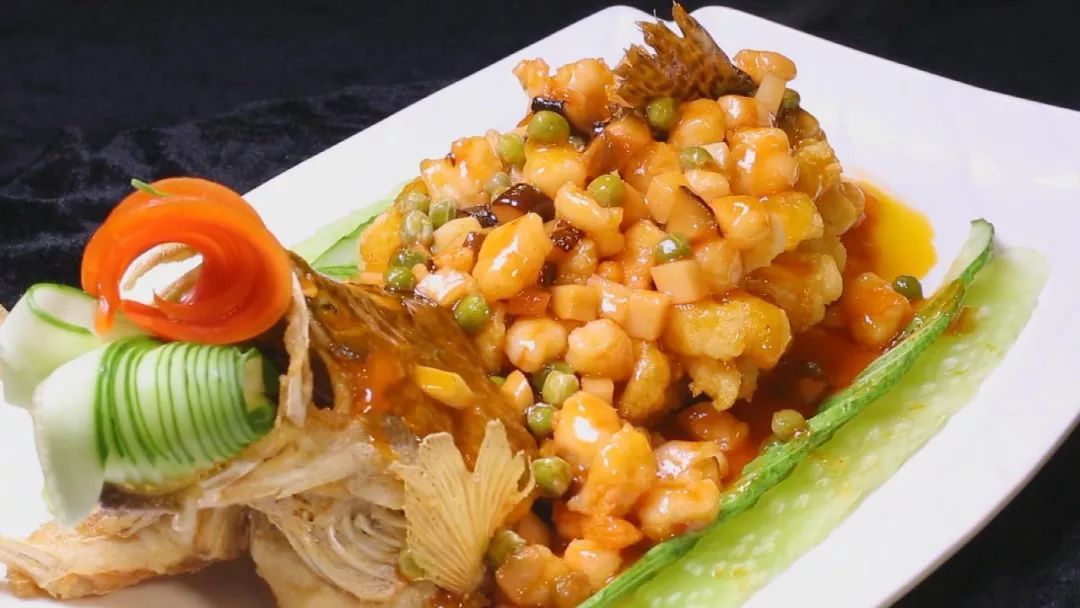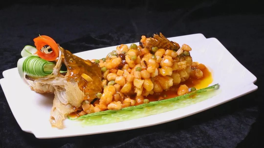 但最有名的菜应该是以下这道松鼠桂鱼,肉质爽滑、色泽红润,造型栩栩如生,据说连乾隆皇帝吃过都赞不绝口。