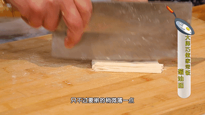 6、将擀好的面片一层层的叠起来,切成粗细均匀的面条。