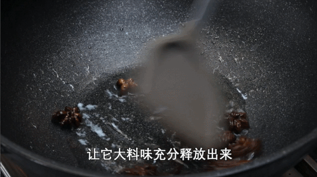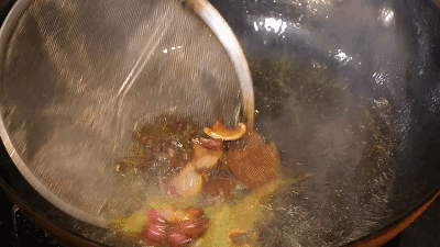 暖暖大厨:将香料全部炸干,香味完全释放即可捞出。