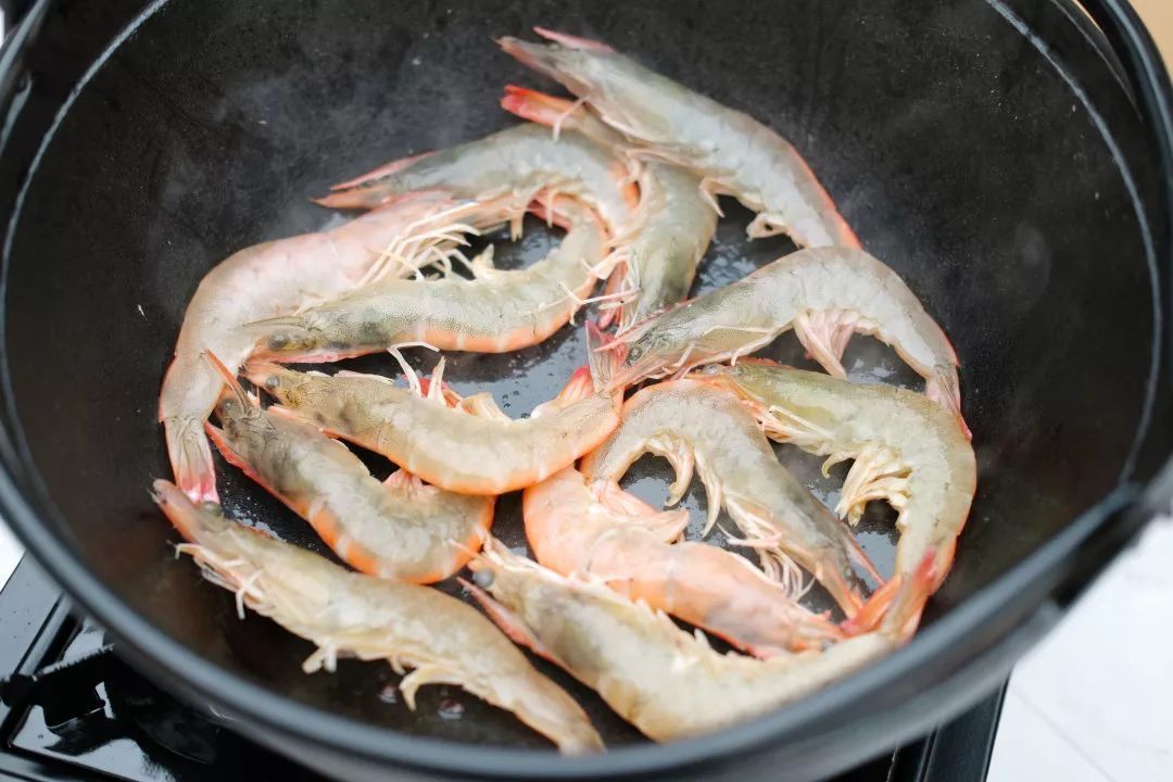煎制:另起一口锅,油烧热放入大虾,加入少许料酒,香煎大约20秒左右至颜色变红,捞出。