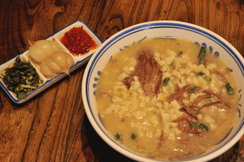 最后:青椒香菜切碎,取出炖好的肉,剁碎,淋上肉汤混着青椒和香菜碎,夹入馍内即可。
