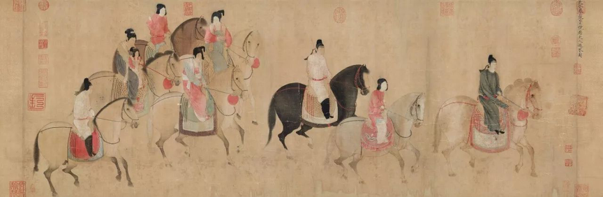 在开放的开元盛世,女子更少地被封建礼教所约束,思想和行为都更为自由,袒露前胸的服饰特点体现在不少唐诗与画作中,如诗人方干的《赠美人》:“粉胸半掩疑暗雪,长留白雪占胸前”;画家阎立本的《步辇图》、唐代著名画作《簪花仕女图》和《虢国夫人游春图》中都有这样的描绘。