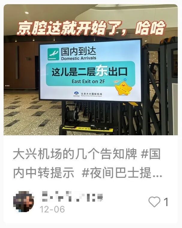 近日,北京大兴机场里儿化音版“絮叨”风格的指示标语走红网络。