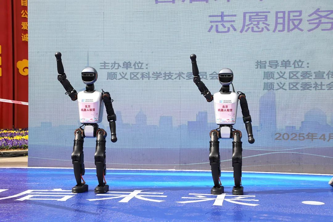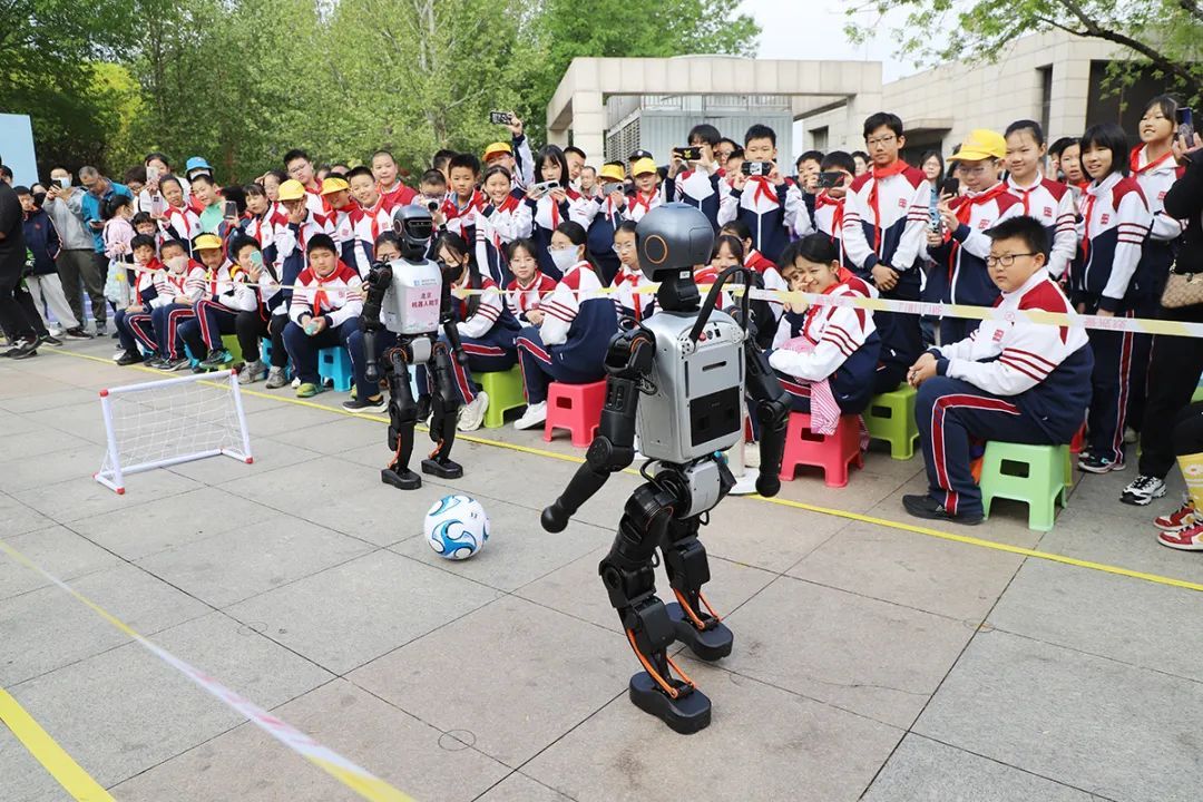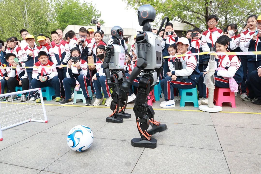来自北京加速进化科技有限公司的Booster T1人形机器人率先亮相。这款在刚刚闭幕的中关村论坛上大放异彩的机器人,不仅展现了舞蹈和俯卧撑技能,还与同伴,为在场市民带来一场“双人足球赛”,充分展现出这款人形机器人的运动控制与协同作业能力。