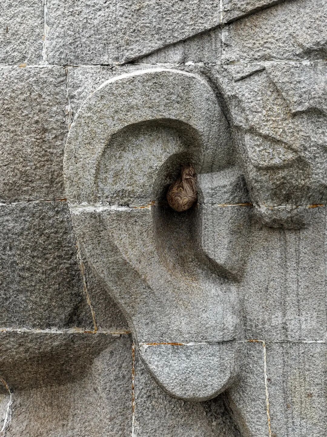 雕像耳朵中的马蜂窝。图源:南国今报