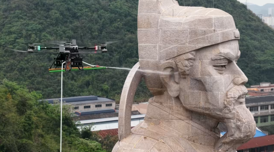 无人机喷水清理。图源:广西消防