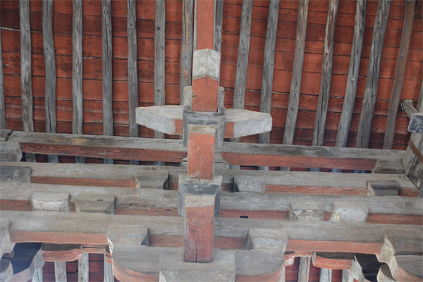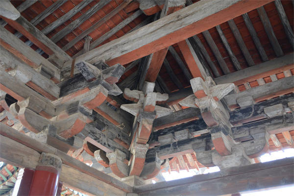 整体上看,整个大殿疏朗利落,落落大方,颇有气派,看上去既是一座庄重气势的大殿,又似一座轻巧灵动的凉亭,它是我国最早也是唯一的一座殿和亭结合的献殿。古人在建造大殿时,材料只有木头,没有使用一根钉子,完全是木头和木头卯榫而成,但是却结构严谨密实,饱经风霜而不腐,实在是古人智慧的结晶,为传世之佳作。
