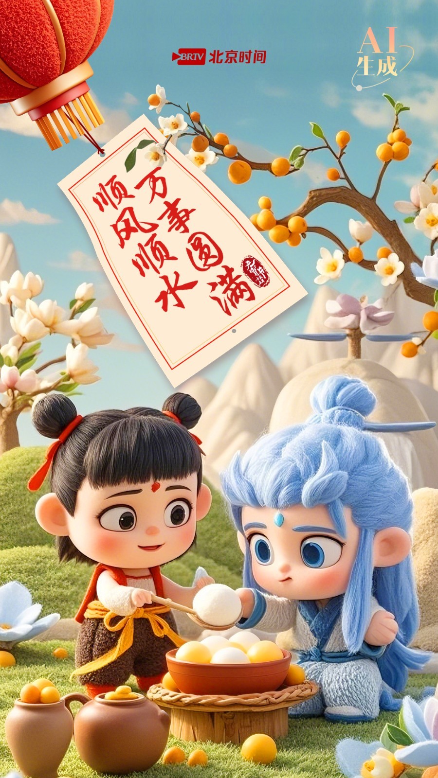 元宵佳节,AI生成一幅萌吐血的哪吒宝宝和敖丙宝宝,一口热腾腾的汤圆下肚,感受甜蜜与团圆的滋味。愿我们都像哪吒一样脚踩风火轮顺风顺水!