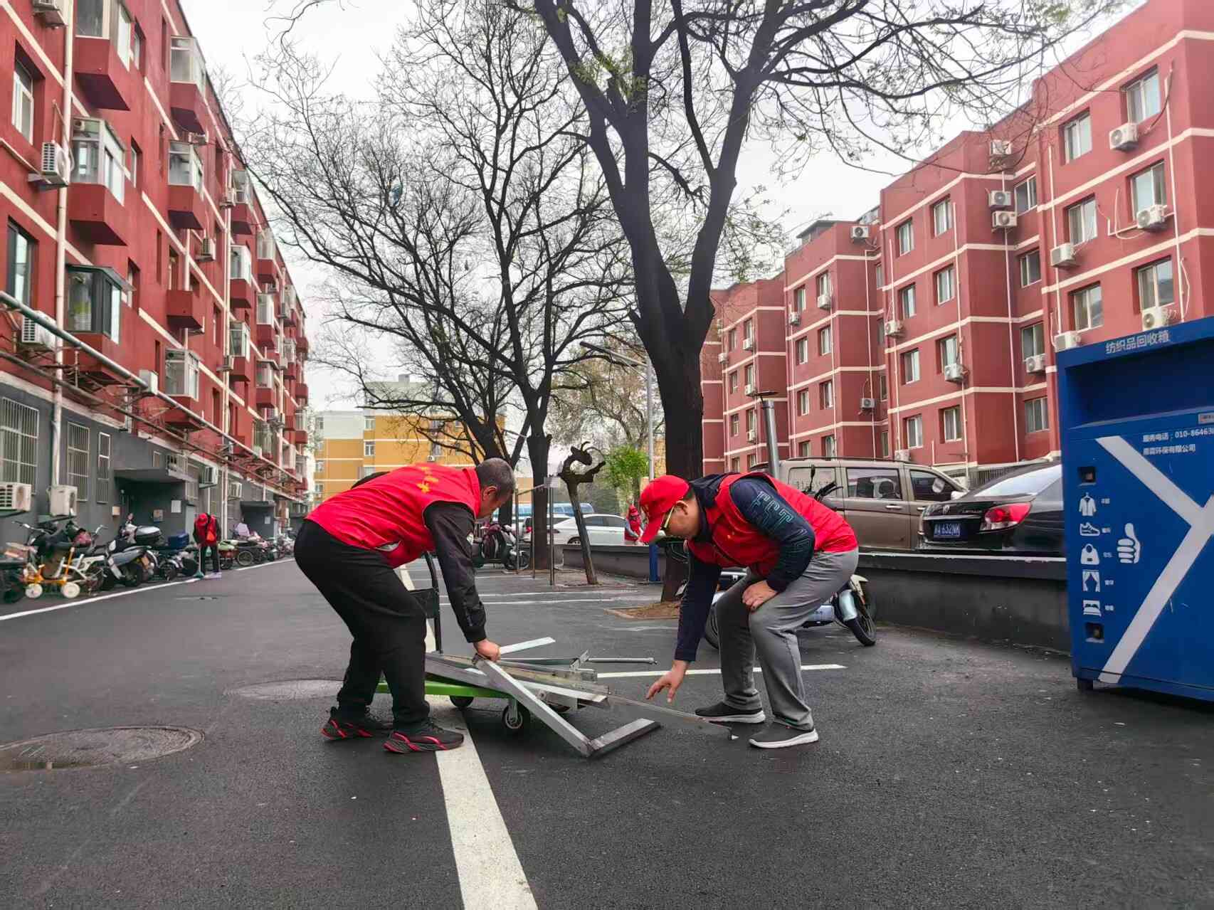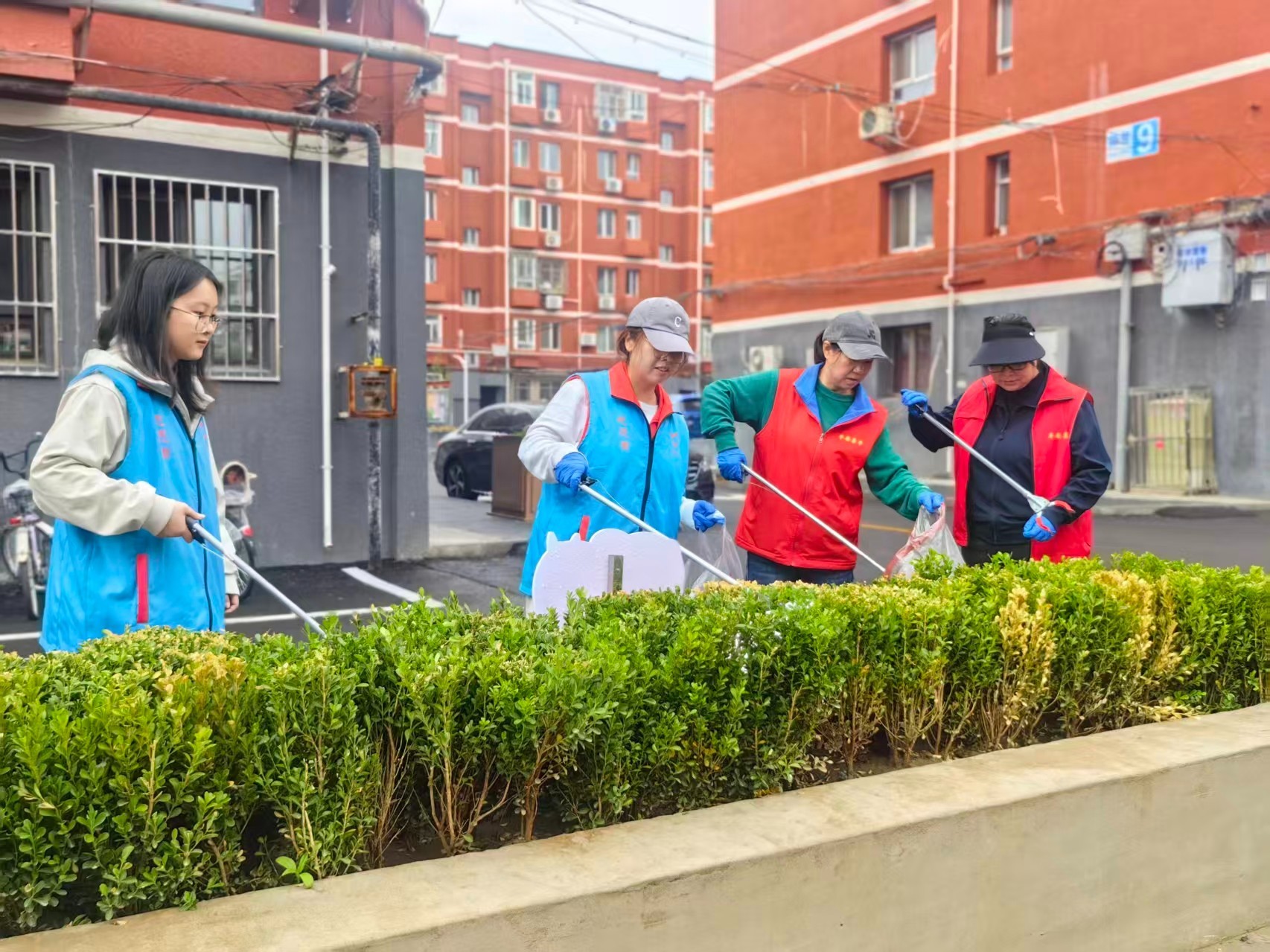 小区主干道上,几位老党员弯着腰,用扫帚仔细将落叶和烟头聚拢成堆;绿化带旁,年轻志愿者蹲下身,用夹子从冬青丛中夹出塑料袋和废弃口罩;楼道口原本横七竖八的自行车,被几名志愿者一辆辆搬起、对齐、摆正,车头朝外,整齐划一。一位路过的居民见状,主动把自己随意停放的电动车推了过来:“看你们这么辛苦,我也得配合。”