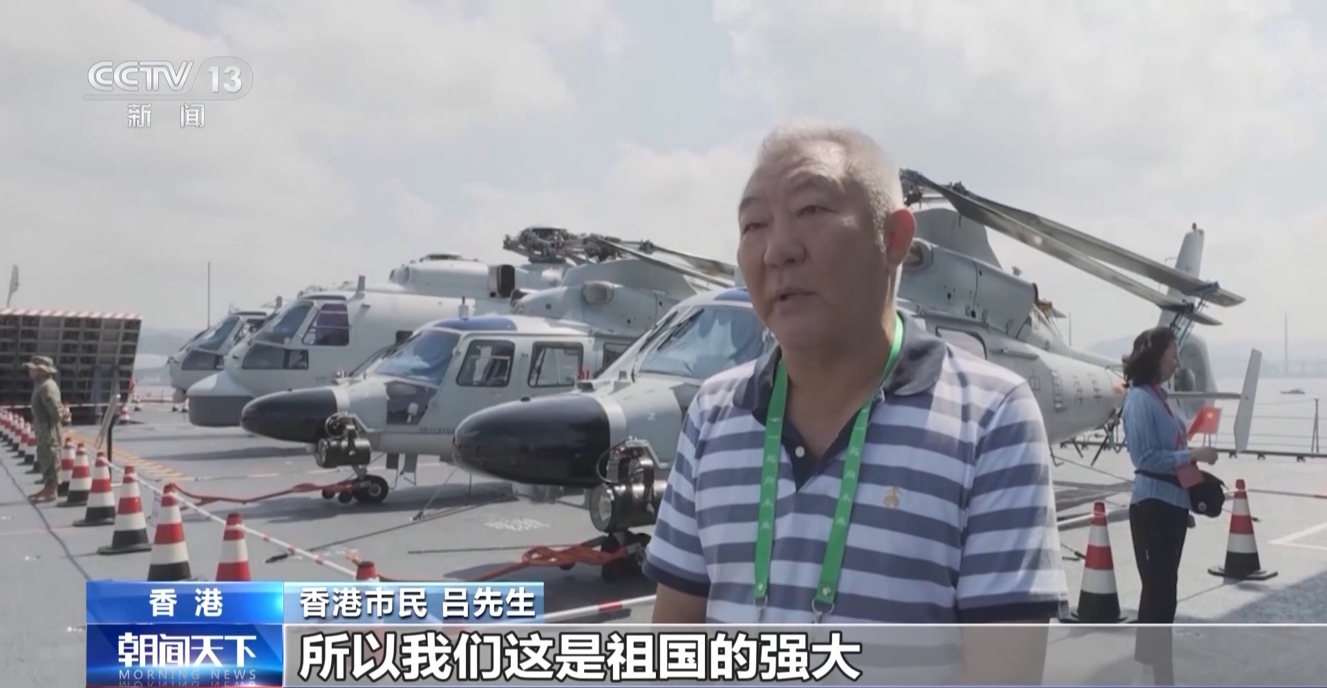 香港市民 吕先生:弱国没有外交,所以这是我们祖国的强大,必须支持国家,香港在享受国家的成果,所以我认为特别有意义,过来参观山东舰。