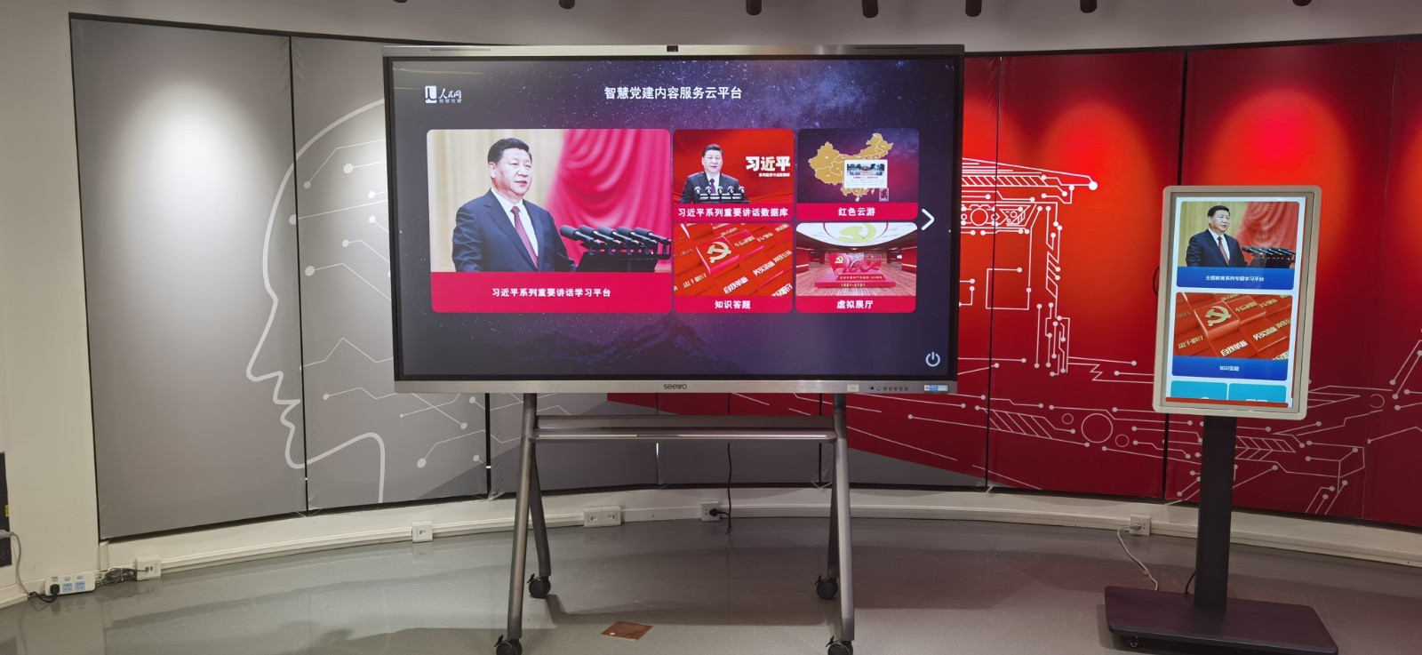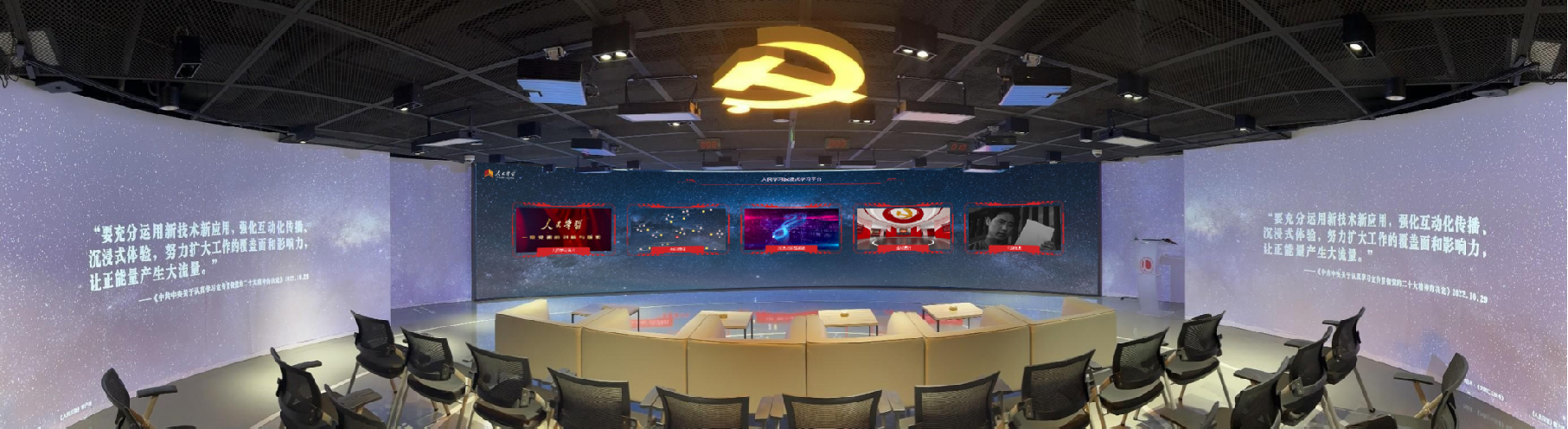 赖积明:“欢迎您莅临人民学习智慧党建体验中心,咱们体验中心呢是在2021年的5月4日正式对外开放的,咱们打造的是精品党建内容现代化展示,以及多款的互动产品深度体验,也是为了响应这个党中央的号召,利用AI、大数据、5G,还有沉浸式的一种新的技术,来打造党建的这个制造领域。”
