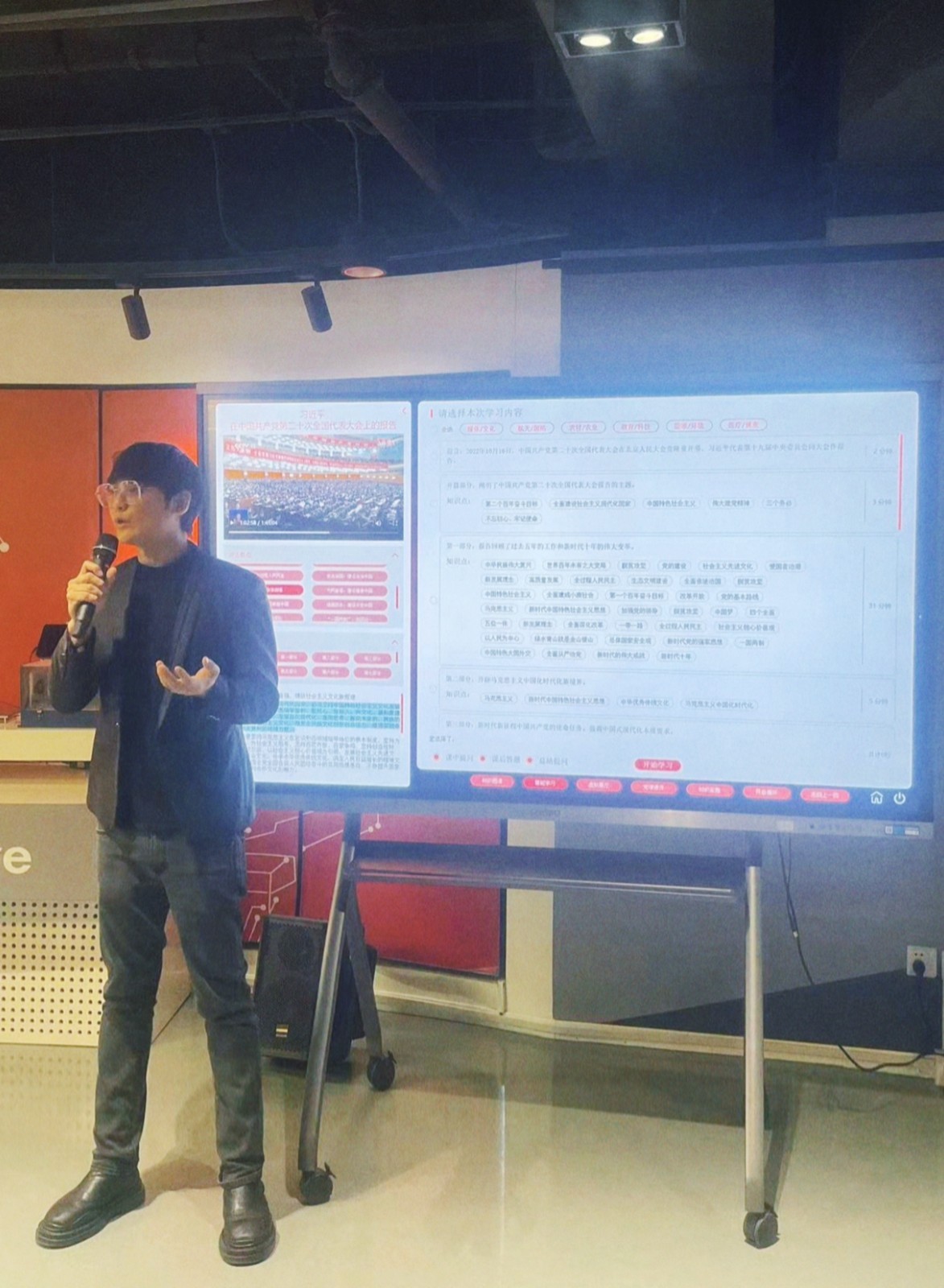 记者来到“智慧党建内容服务云平台”前。这里既能看视频听原文,强化知识点,还能链接相关新闻报道,检索自己所在领域的讲话精神,还有AI老师讲解。
