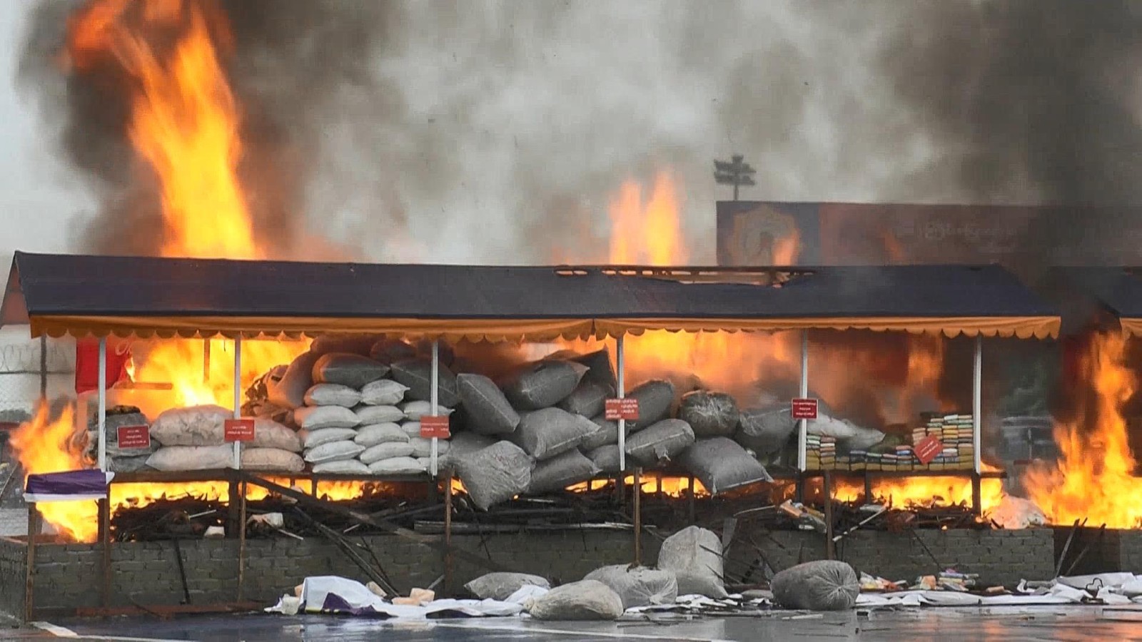 6月26号是国际禁毒日。当天,缅甸和泰国多地举行毒品及易制毒化学物品销毁活动。