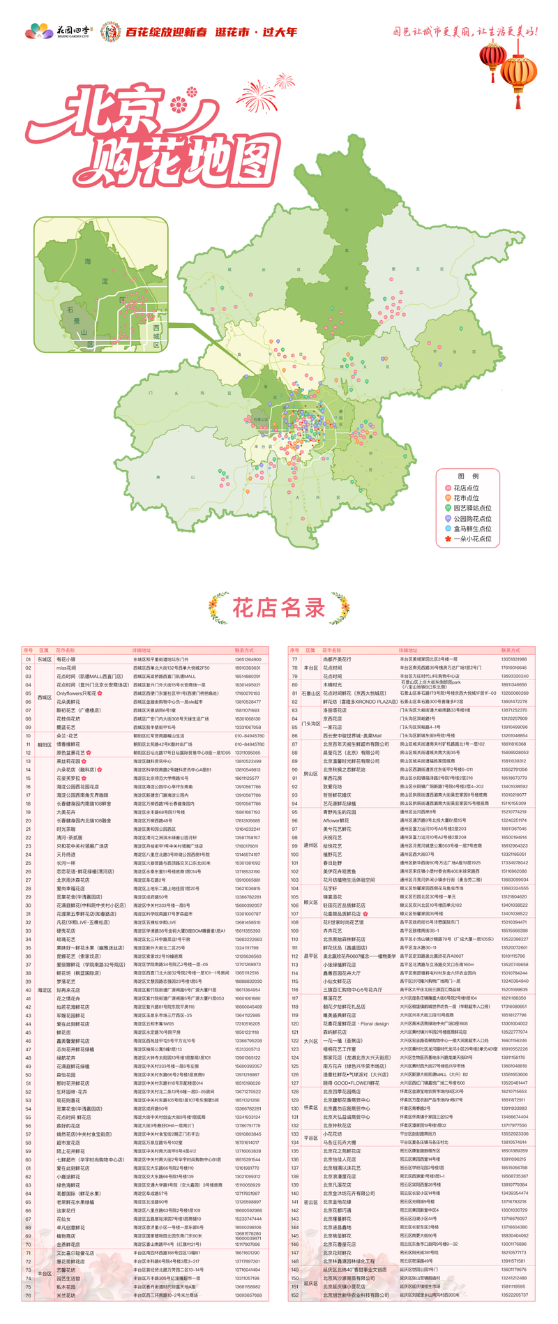 全市23家花卉市场,400多个花店,100多个驿站、公园、盒马鲜生、地铁“一朵小花”线下网络服务北京市民,线上北京花卉产业链数字平台、京东、美团都专门开设了线上嘉年华专区。同时,发布了北京赏花购花地图。全市16区组织园艺进家庭、进社区、进商圈,今年还把花展搬到了市政府的政务大厅,市民朋友生活、工作的场景,进行了年宵花的展销活动,让大家能更便捷地买到心仪的花卉。嘉年华期间,全市将有2,100万盆的年宵花陆续上市。