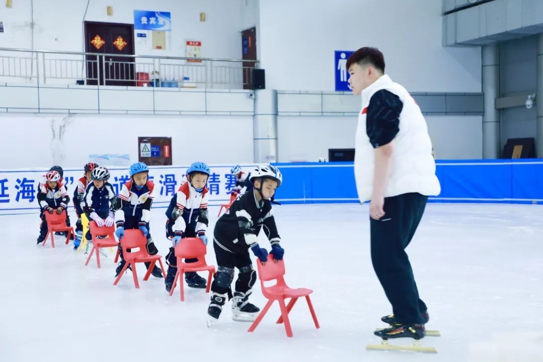 冰面上,这些零基础的“小萌新”有的紧握彩色小凳子当作“安全舵”,小心翼翼往前蹭;有的已松开支撑,伸展双臂尝试独立滑行。冰刀划过冰面,各校队列划出一圈圈灵动弧线,欢笑声与鼓励声交织,孩子们正以勇气和好奇,解锁冰上运动的魅力。