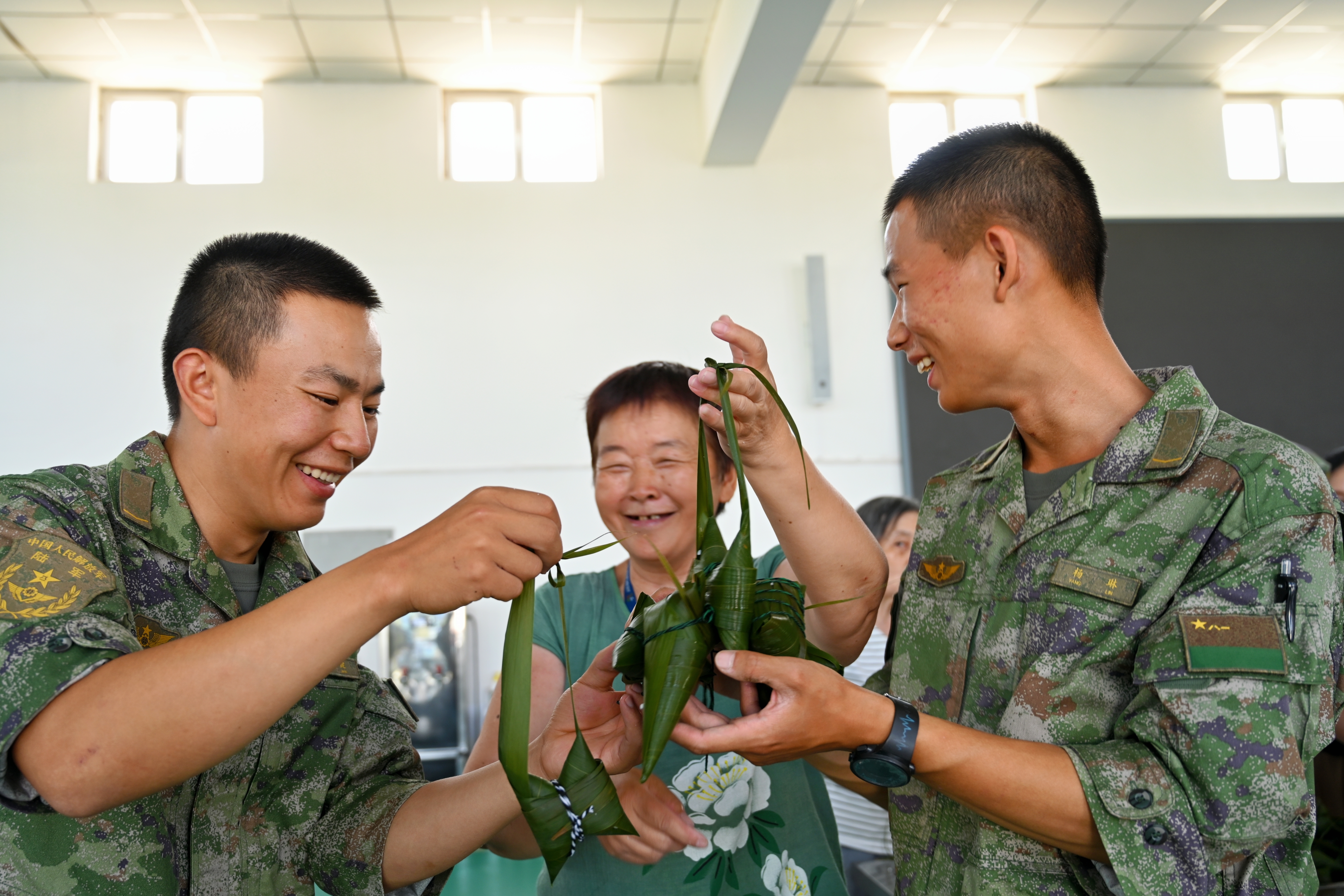 军民齐心协力下,一盘盘热粽相继出锅,淡淡粽叶香乘着节日的氛围,钻近官兵们的心坎里,此刻战士们脸上洋溢的笑容,也印在了前来慰问的志愿者心里。“看到战士们可爱的样子,很令人心疼,他们不远千里离开家乡驻守边疆,很是伟大。”驻地社区居民白春兰表示,粽子虽小,但能让身在异乡的官兵们吃上了香甜味美的粽子,心里就特别开心。(记者颜葵;记者站:万辉、张天虎)