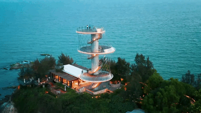 下午建议可前往出片圣地【悬崖礁石酒吧】。牛头岭风景区因形似青牛而得名,背靠飞凤山群峦叠嶂,面迎南海万顷碧涛。怀卧 " 牛角湾、礁石湾、情人湾 " 沙滩街;环抱 " 牛头岭、牛腿岭、牛脚岭 " 的全生态景区,被誉为生态游的最佳地点。