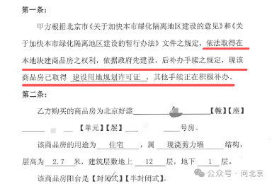可是,居民李女士(化姓)向“问北京”记者展示了当初购房时与开发商签署的《商品房买卖协议》,其中明确写着,“甲方根据北京市《关于加快本市绿化隔离地区建设的意见》和《关于加快本市绿化隔离地区建设的暂行办法》文件之规定,依法取得在本地块建商品房之权利”,这份协议中也多次提到房屋性质为商品房。