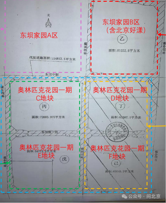 东坝家园小区和奥利匹克花园小区的位置关系图/受访者 提供