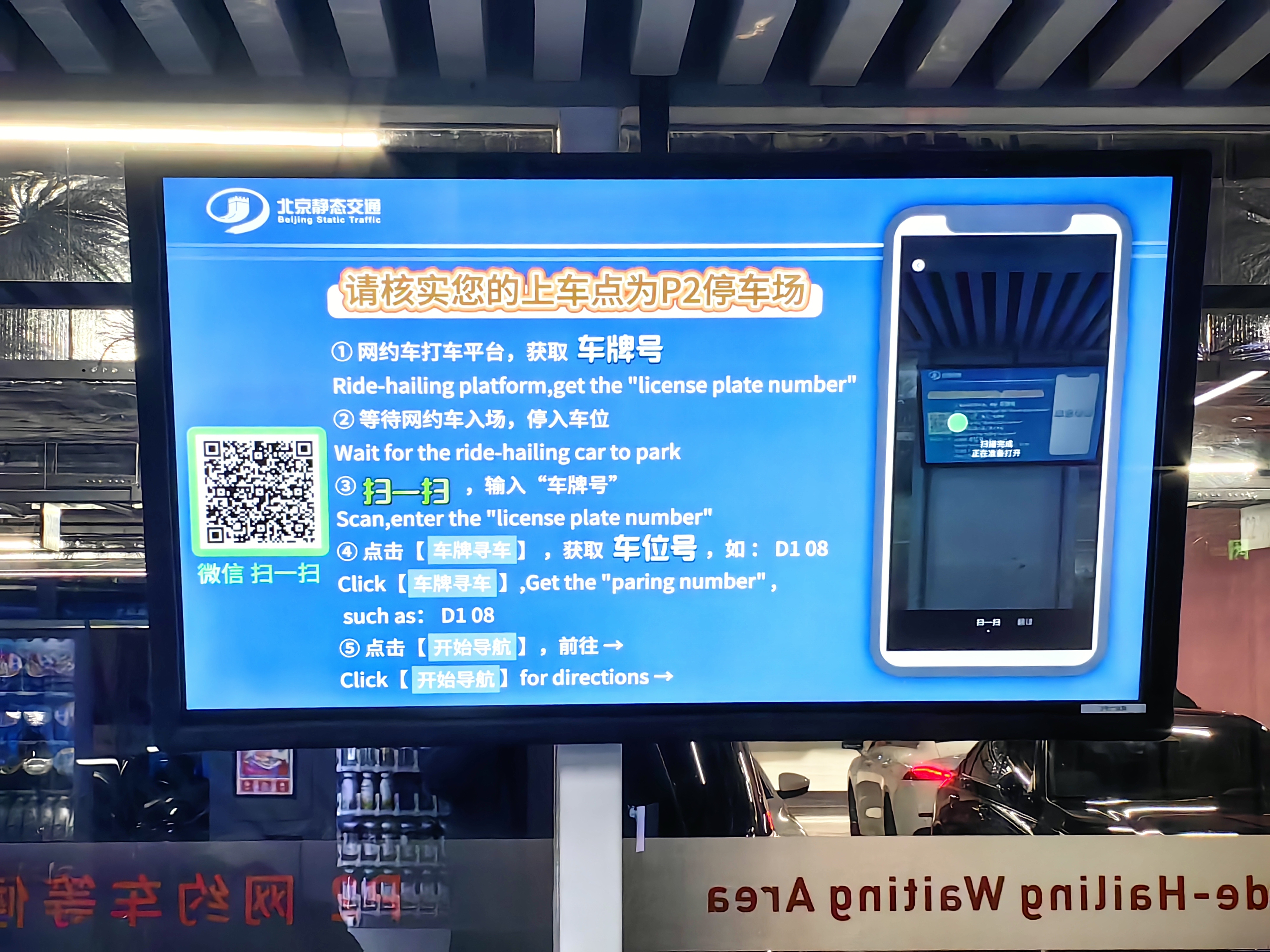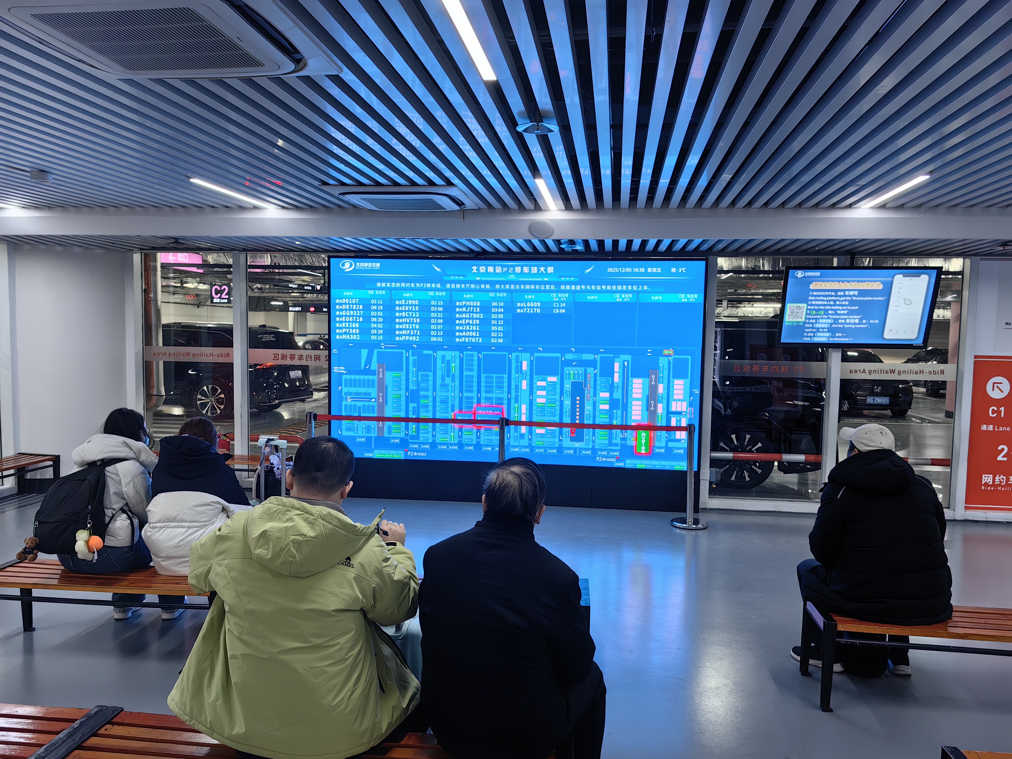 记者在P2停车场看到,地面采用环保防滑材料重新铺装,灯光系统经过优化,亮度均匀舒适,车辆遵循清晰划定的单向循环流线有序通行或候客。在旅客候车区域,数块高清LED智能引导屏实时同步车辆位置,旅客通过微信扫码即可随时掌握车辆轨迹,并辅以清晰的语音播报,实现了司乘信息的无缝对接。