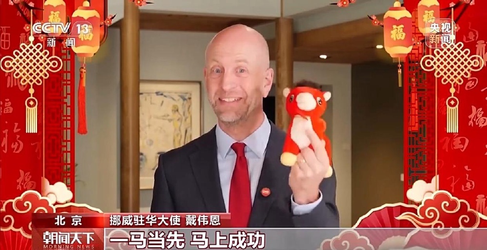 挪威驻华大使 戴伟恩:春节快乐!一马当先,马上成功!