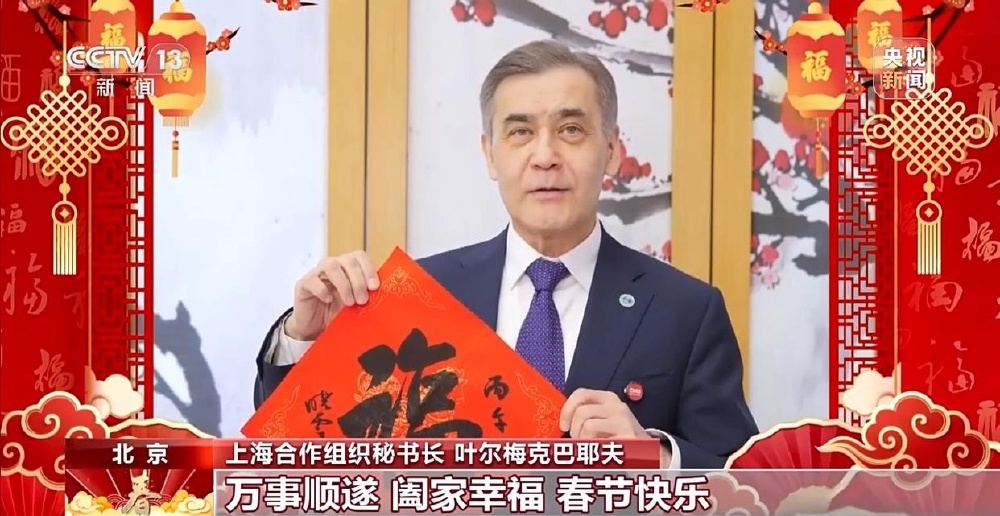上海合作组织秘书长 叶尔梅克巴耶夫:中国有句成语叫“马到成功”。我们相信,马能够引领人们走向成功。我们期待马年将为所有人带来好运。祝愿所有中国朋友们,马到成功,龙马精神,万事顺遂,阖家幸福。春节快乐!