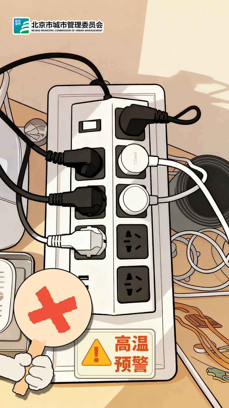 “插线板不是‘万能插’!”超负荷使用会让它‘发烧’,易引发火灾!正确做法:专插专用,拒绝过载。大功率电器(如空调、取暖器)要使用独立插座,插线板在选购的同时注意CCC认证。