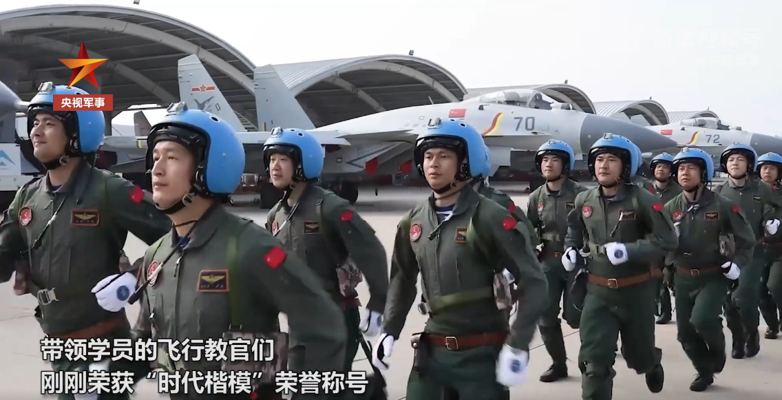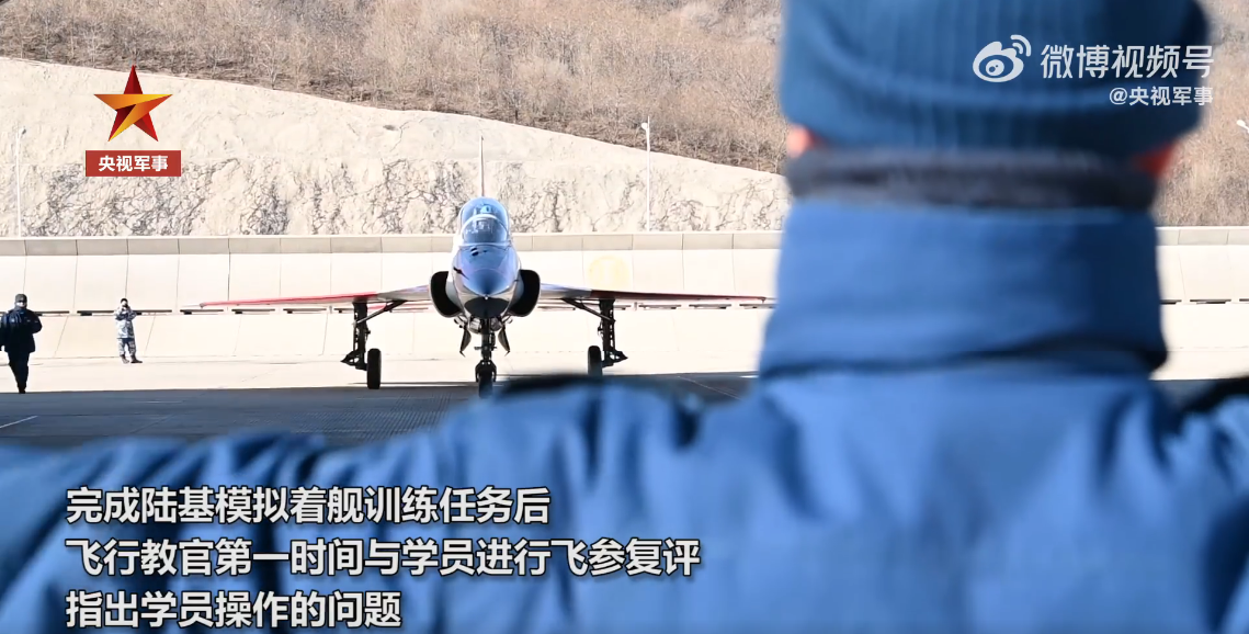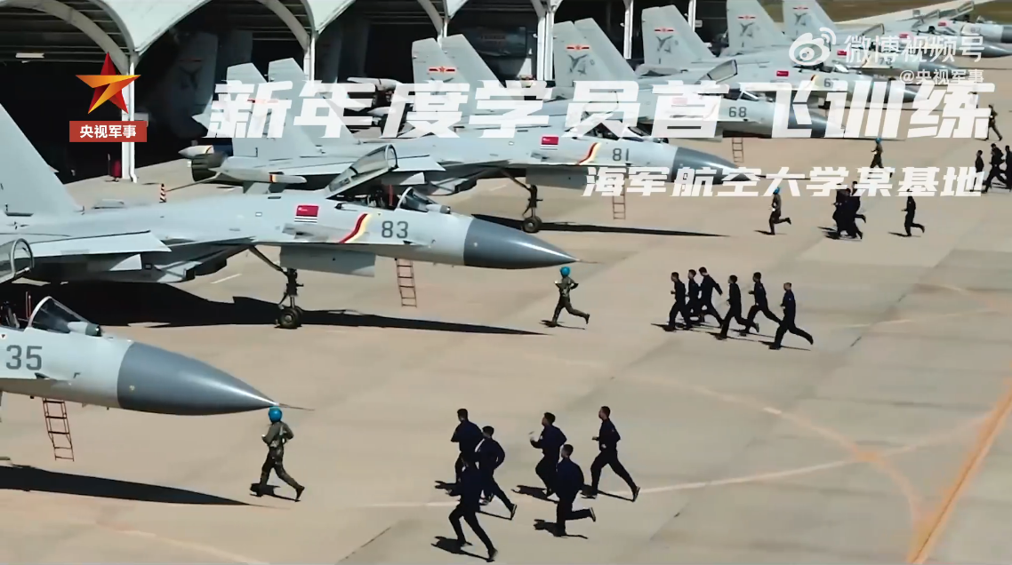 “时代楷模”海军航空大学某基地舰载机飞行教官们,带领学员顺利完成新年首飞训练,2022年度舰载机飞行人才培养工作拉开序幕。数架战机依次滑出,接续升空,陆基模拟着舰训练展开。