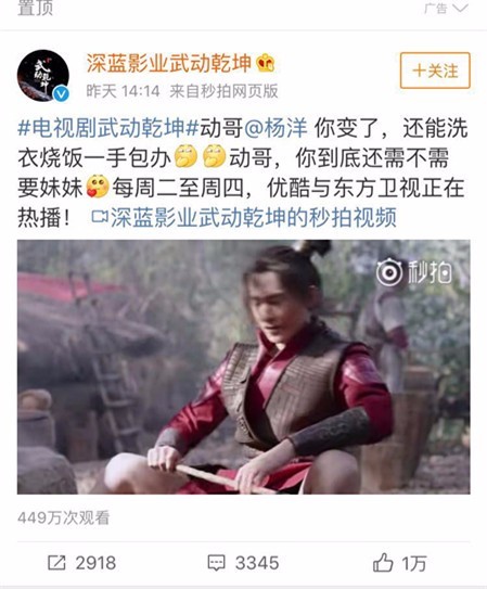 《武动乾坤》播出 杨洋被说变了 调皮连发四条微博求问_北京时间