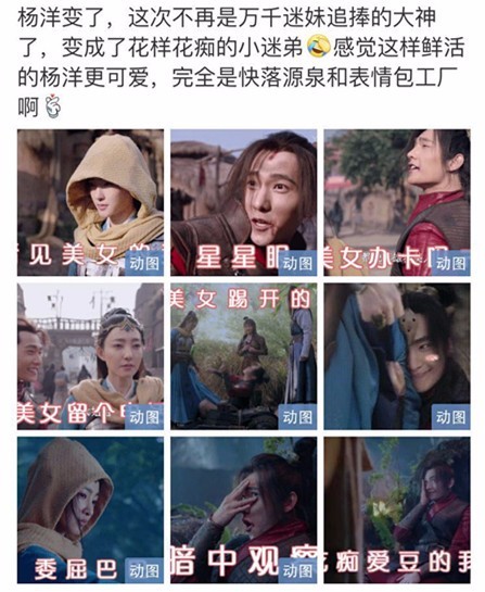 在《武动乾坤》这部剧里,杨洋也不再是别人眼里的大神,他反而成为了别人的迷弟,在戏里创造出很多的表情包,可谓是喜感满满!