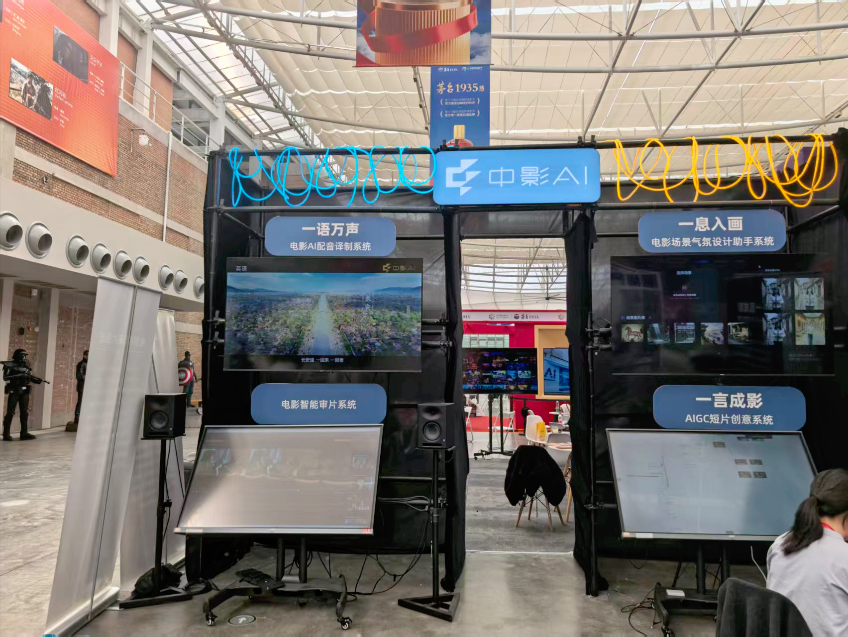 在电影节招商展会现场,锦灰谷(北京)文化传媒有限公司商务经理刘正坤同时忙着客户接洽与员工招聘——这两项工作,都围绕着公司的主营业务AIGC展开。