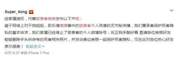 赵某遇害后,其家属曾公开表示希望网友不要传播女儿的照片,并将赵某微博账号注销。
