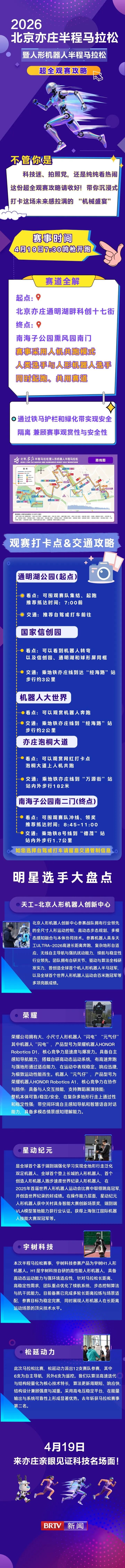 2026北京亦庄半程马拉松暨人形机器人半程马拉松4月19日7:30鸣枪开跑!怎样去现场观赛?观赛有哪些最佳打卡点?我们都帮您整理好了!这份超全观赛攻略请收好!