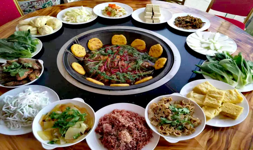 午餐安排的是官厅灶台鱼,怀来当地有名的特色美食。据说起源于清朝,已经颇有历史。鱼是由嘎牙子鱼、胖头鱼、草鱼、鲫鱼、胖头鱼等多种野生的活鱼烩制而成,酱料是用大枣、枸杞、把蒿等精心调制而成的农家风味,灶台铁锅、柴火慢炖,边吃边聊,有滋有味。