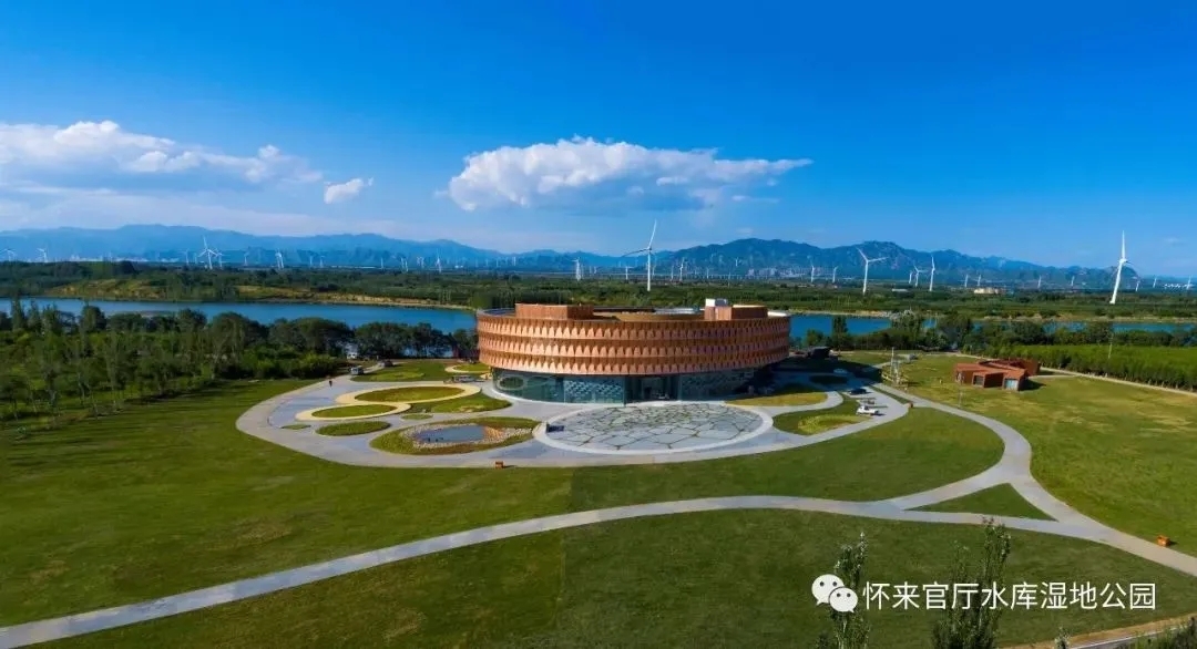 公园里的湿地博物馆,集湿地生态系统展示、怀来历史文化、官厅水库建设历程、科普宣教和专题展览等功能于一体。彩色薄膜光伏发电系统,太阳能供热供水系统,屋顶的全视野雨水湿地花园,室内空气质量检测联动系统,楼宇智能控制系统……是高科技和绿色环保相结合的先锋建筑没错了!