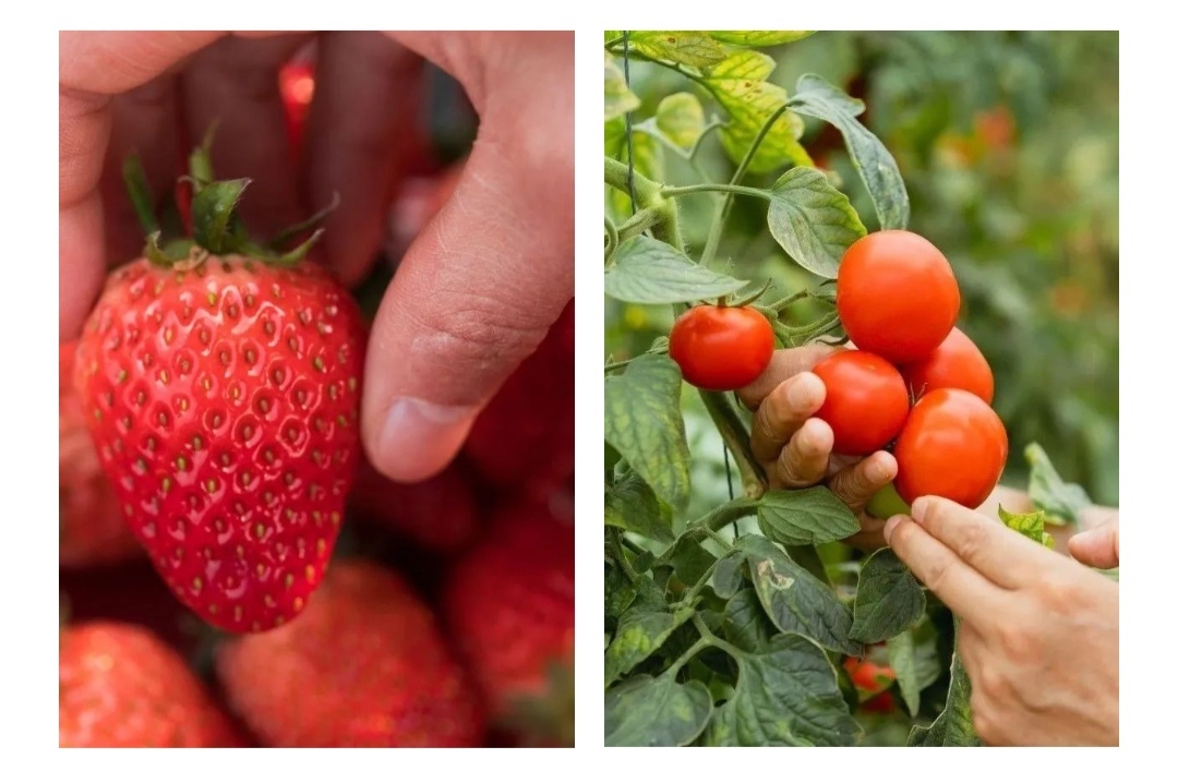 13:30 大棚采摘,品尝、采摘纯天然无农药的新鲜草莓和西红柿。