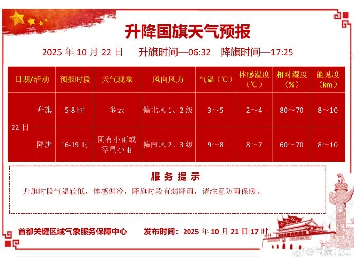 #10月22日天安门地区升降国旗天气预报#
