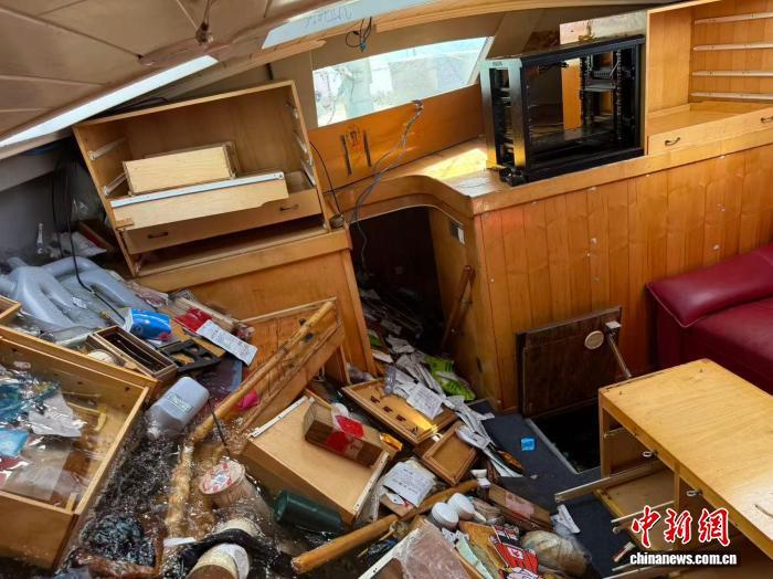 遭劫掠后,“翟墨1号”帆船内部场景。翟墨团队供图