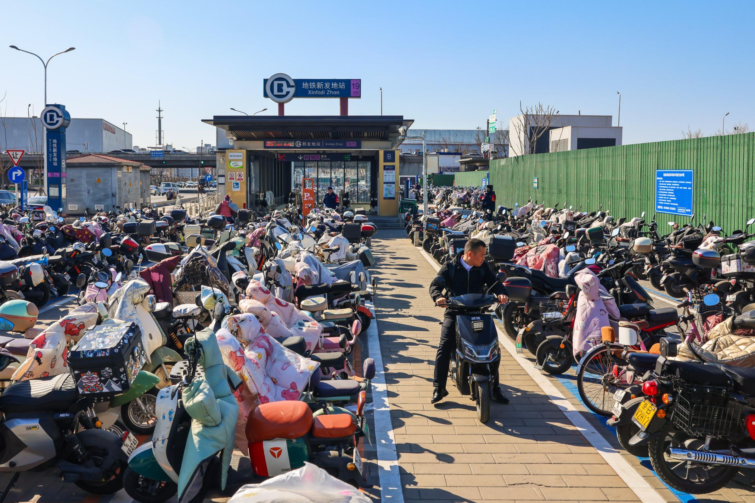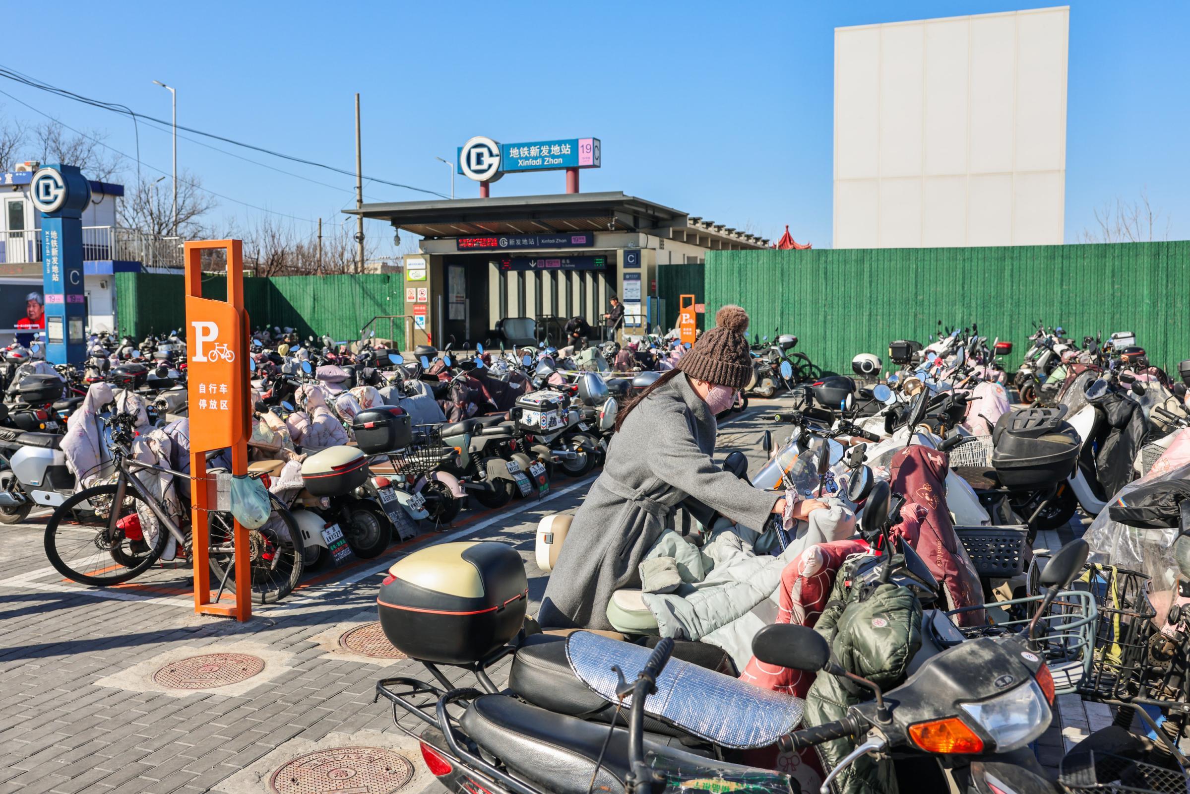 地铁19号线新发地站周边绿地、空闲土地改造为非机动车停放区,可容纳停放非机动车2200余辆。