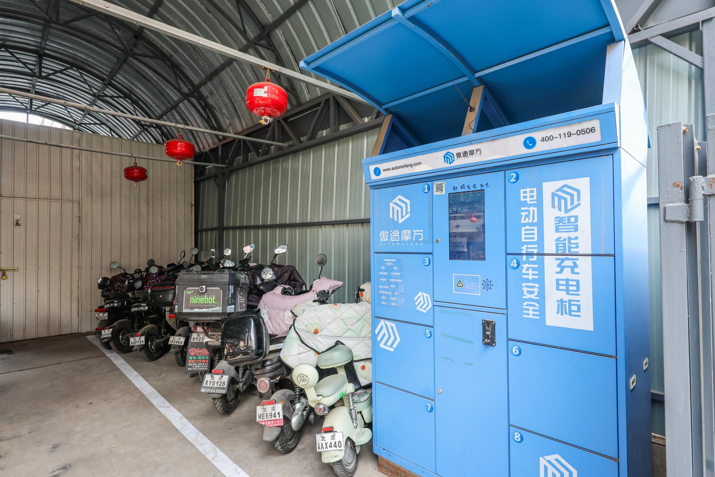 景山街道城市管理办公室副主任姬鹏翔介绍,商厦院内东侧与连丰胡同处,此前为违法建筑,景山街道将其拆除后一直闲置。今年3月,相关部门利用该空间新建两处电动车集中停放区,各配置40个充电桩接口,同步划定自行车、共享单车专属停放区域,约可满足100辆电动车、60辆自行车及共享单车停放,可满足80辆电动车充电。