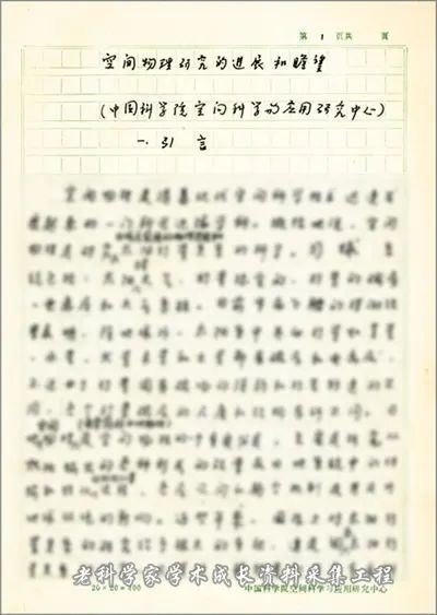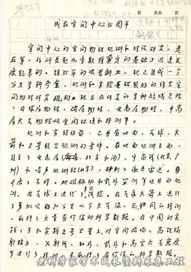 1991年4月,刘振兴的《空间物理研究进展和瞻望》手稿