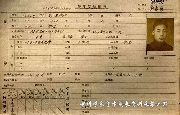 1950年,刘振兴的国立山东大学教务处学生学历总表