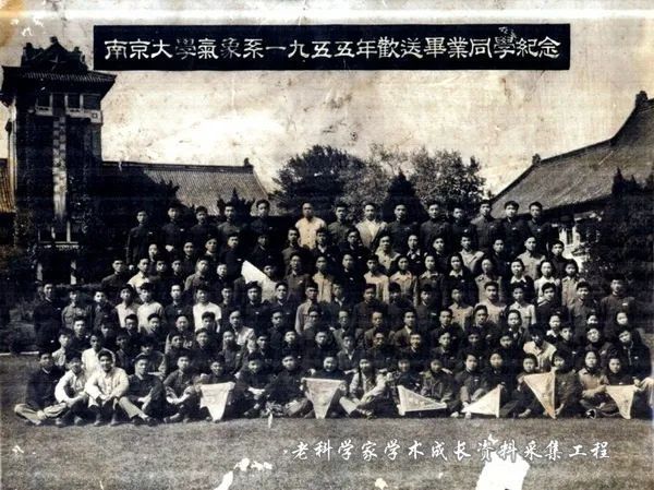 1955年,刘振兴(一排左七)在南京大学气象系一九五五年毕业纪念照片