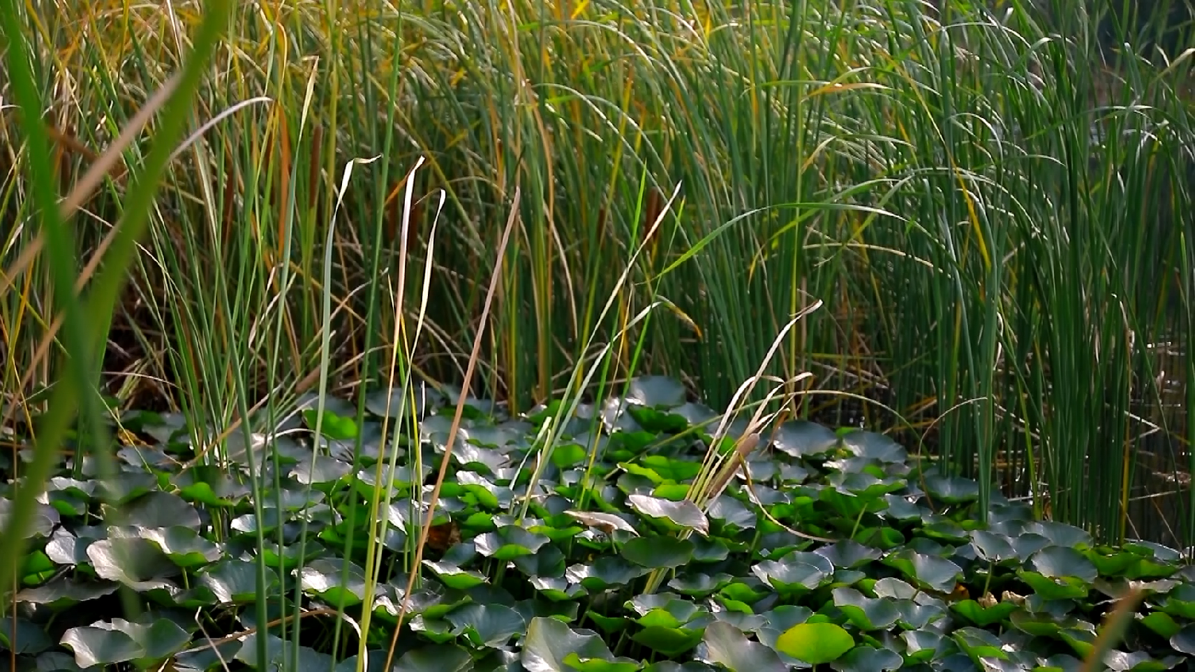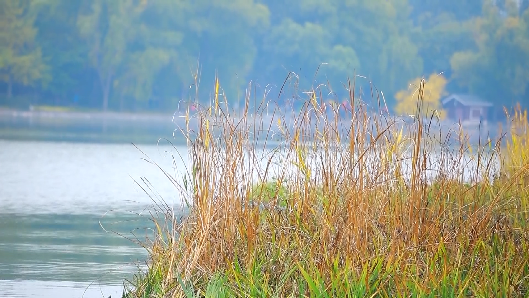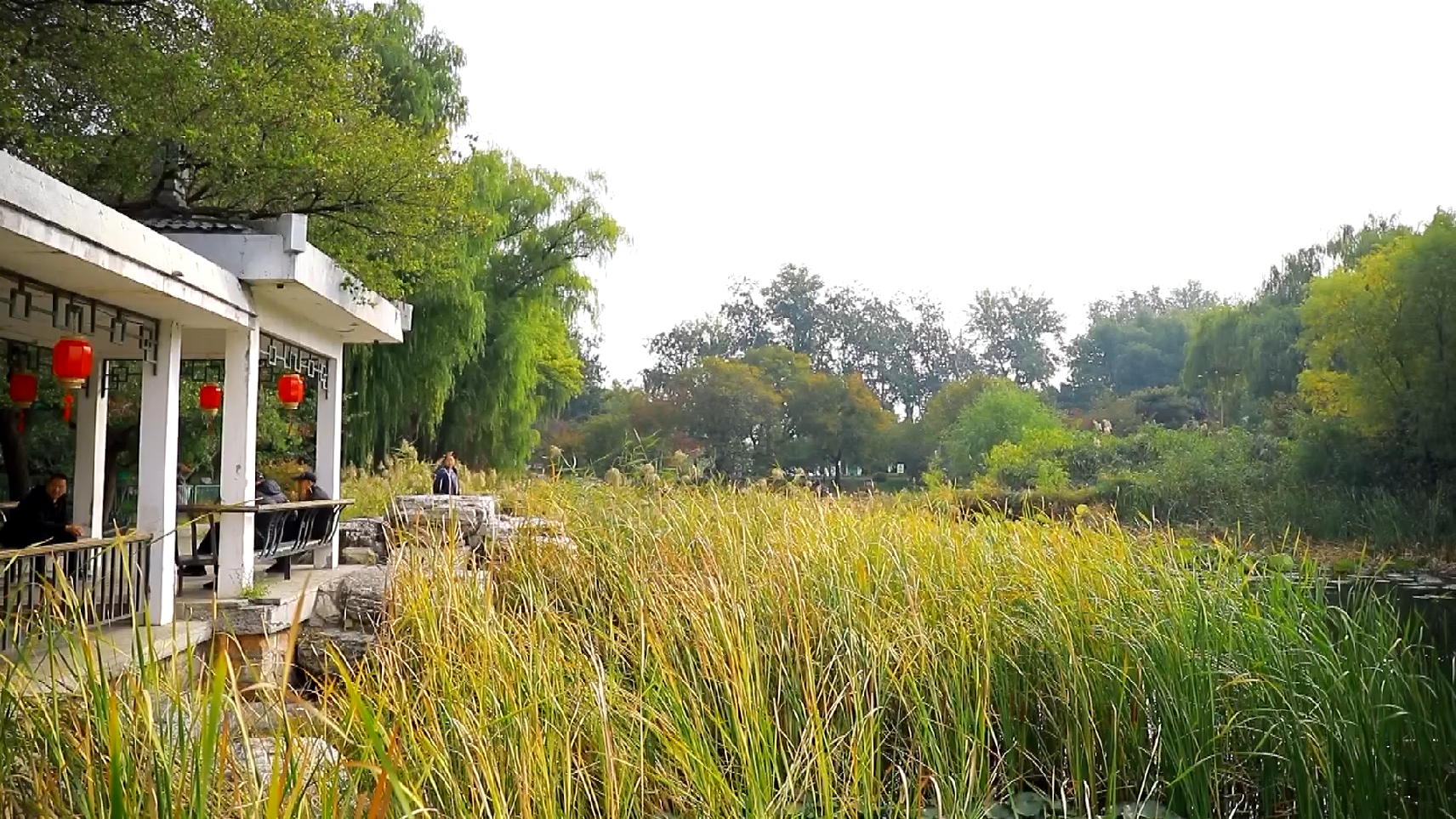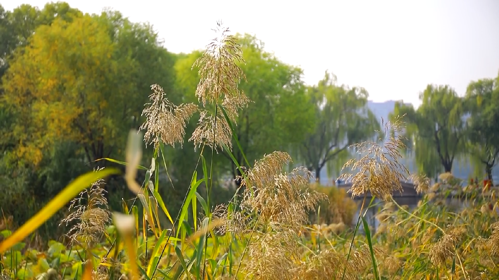 在公园西北部的樱花园里,睡莲、菖蒲、荇菜等水生植物与湖畔的大片芦苇相映成趣,可谓“树树皆秋色,山山唯落晖”。