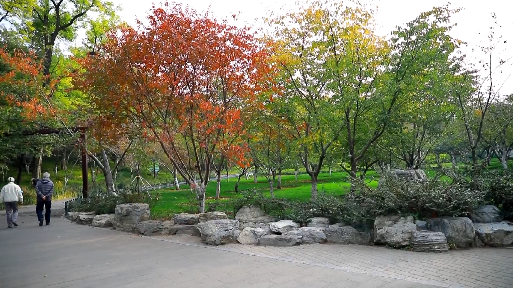 公园东南部的玉渊春秋,以银杏、栾树、白蜡、天目琼花、悬铃木等植物为主,深秋时节,树叶渐黄,阳光透过棕色长廊,映出黄、红、棕的温暖色调。此外,游客还可以登上南山观樱景区的观景台,体验玉渊潭公园绘制的秋季“缤纷画册”。