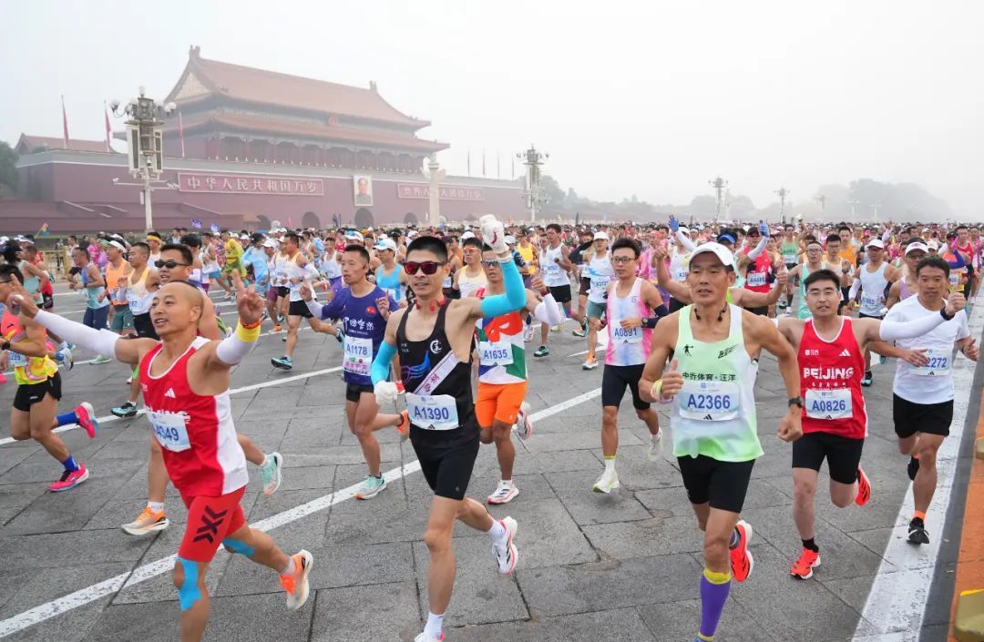 今天上午7时30分,2024贝壳北京马拉松暨全国马拉松锦标赛(第3站)在天安门广场鸣枪开跑。