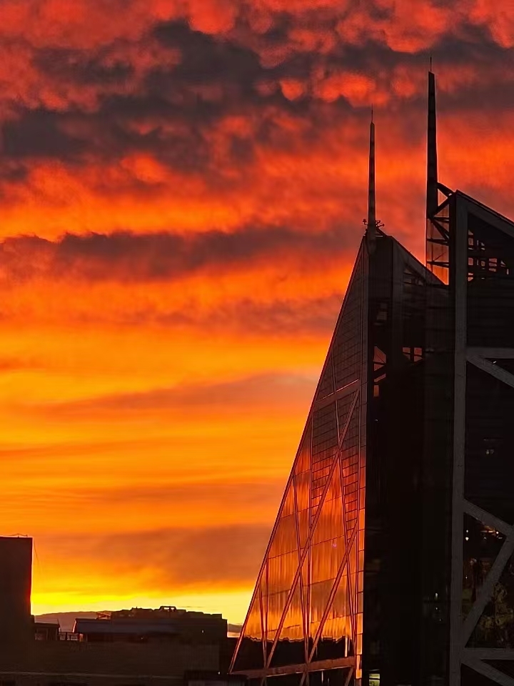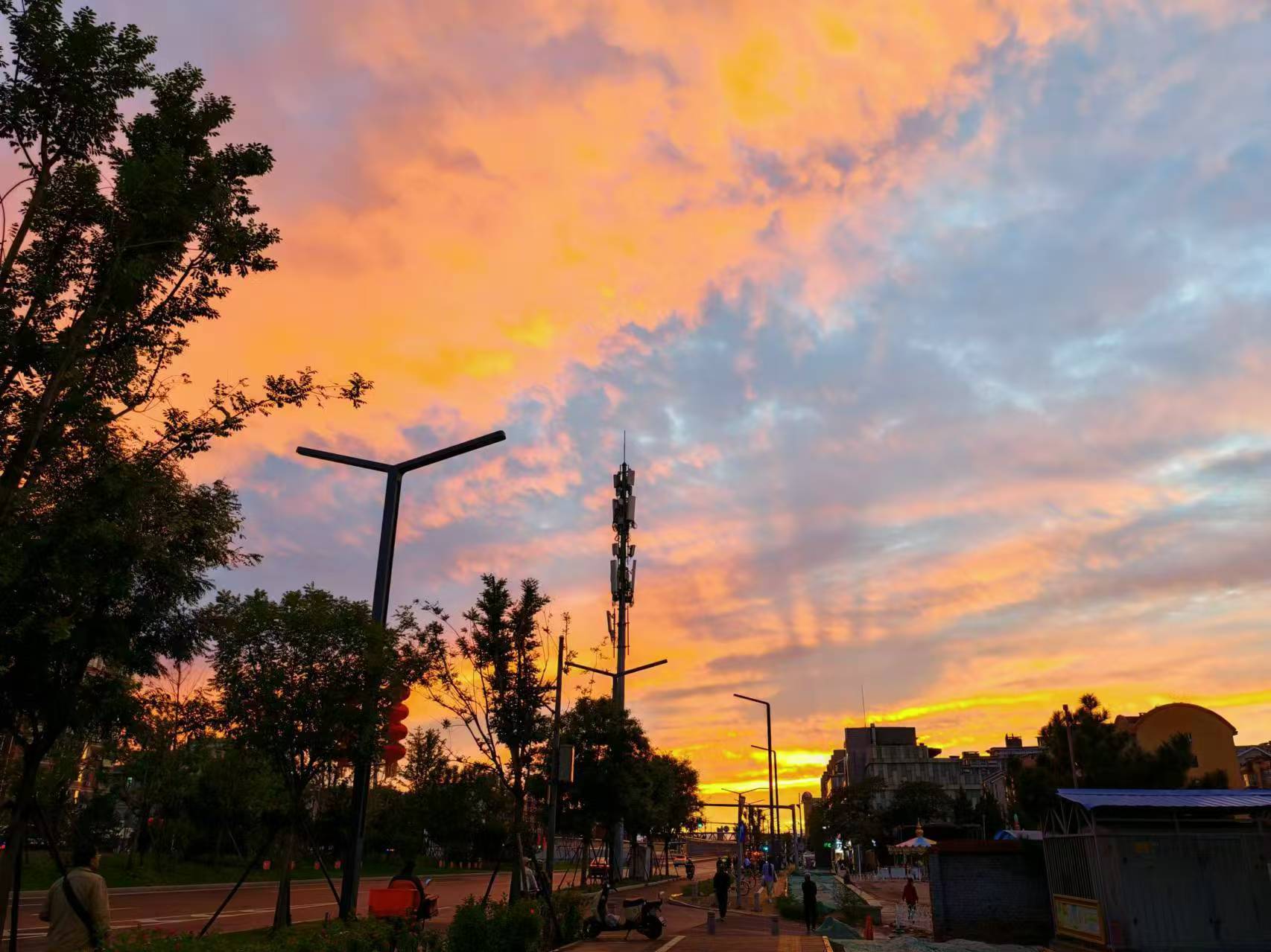 初始的金黄宁静,到火烧云的璀灿!今晚的霞光很有料!