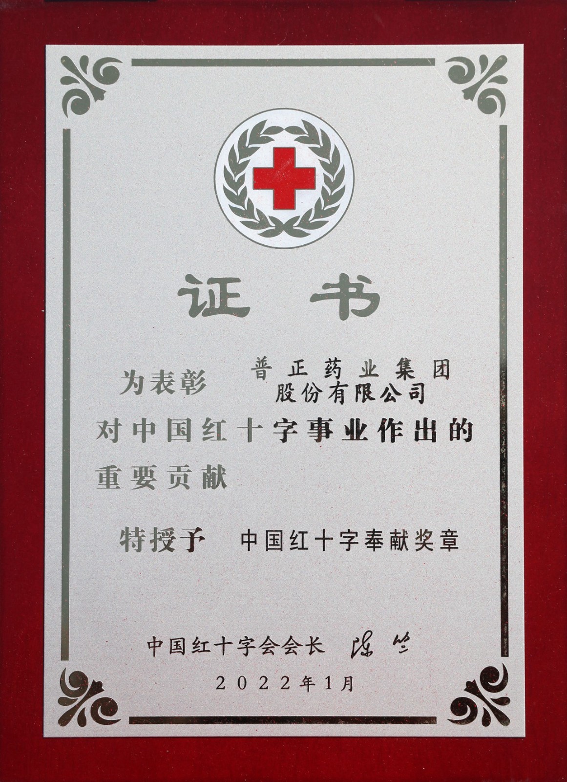 2022年1月,获中国红十字会授予中国红十字奉献奖章。