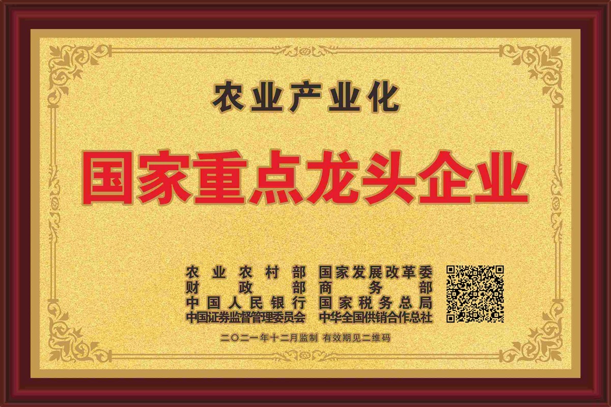 2021年12月22日,获农业农村部、国家发展改革委等部门认定“农业产业化国家重点龙头企业”。