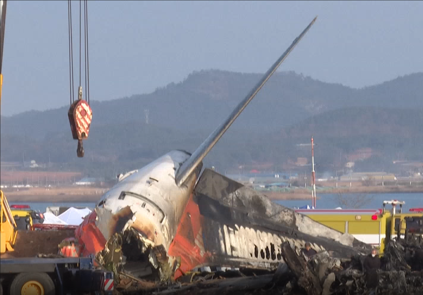 去年12月29号,韩国济州航空7C2216号航班在位于全罗南道的务安机场降落时坠毁,机上乘客和机组人员除两名乘务员获救,其余179人全部遇难。